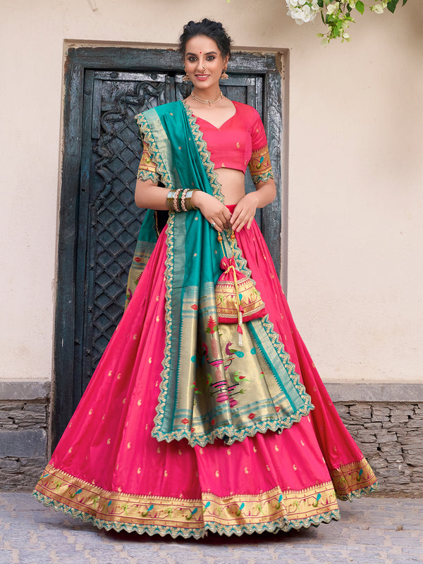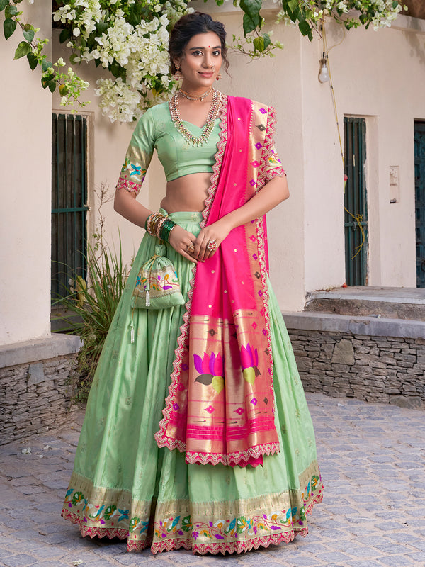 Green Traditional Silk Lehenga Choli with Rani Pink Blouse