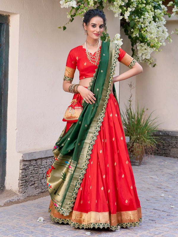 Traditional Red Silk Lehenga with Khatli Embroidery Heavy Work for Wedding Wear