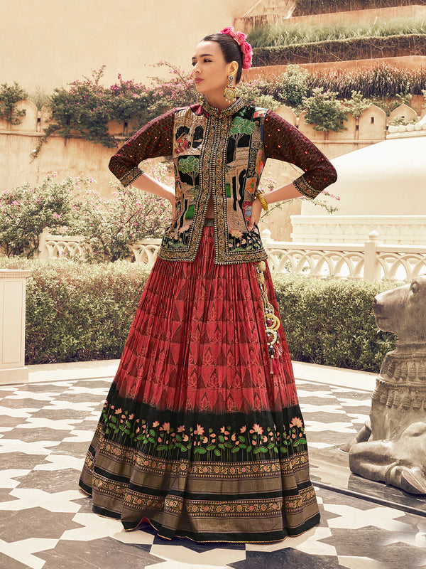 Red Silk Lehenga with Khatli Embroidery Heavy Work
