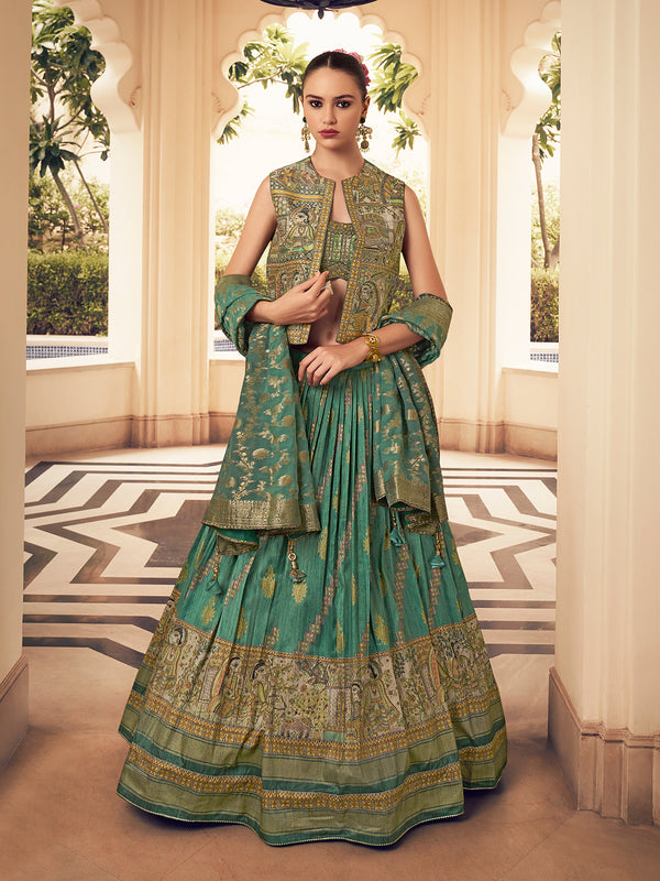 Green Silk Lehenga for Wedding with Heavy Embroidery
