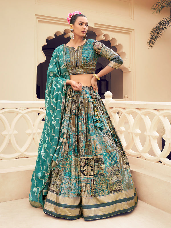 Embroidery Work Green Silk Lehenga Choli for Wedding