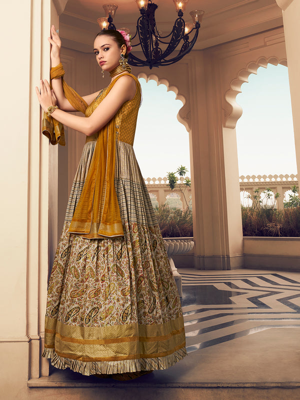 Mustard Silk Wedding Lehenga Choli with Heavy Embroidery & Mirror Work