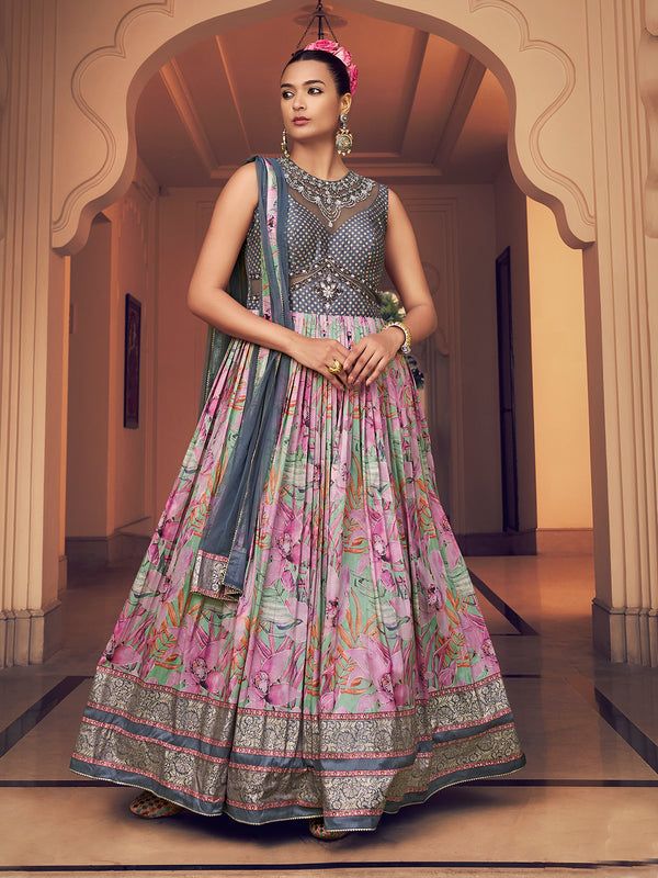 Designer Embroidered Pink Silk Weeding Lehenga Choli Set