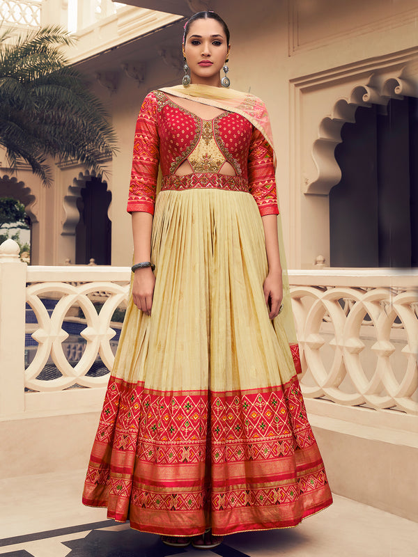 Beige Silk Wedding Lehenga with Heavy Embroidery, Cut Work Border