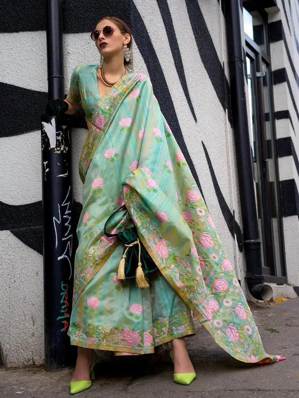 Multi-Color Silk Saree with Floral Print Pallu & Border For Every Occasion