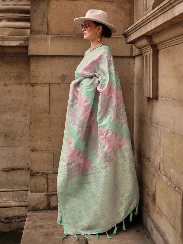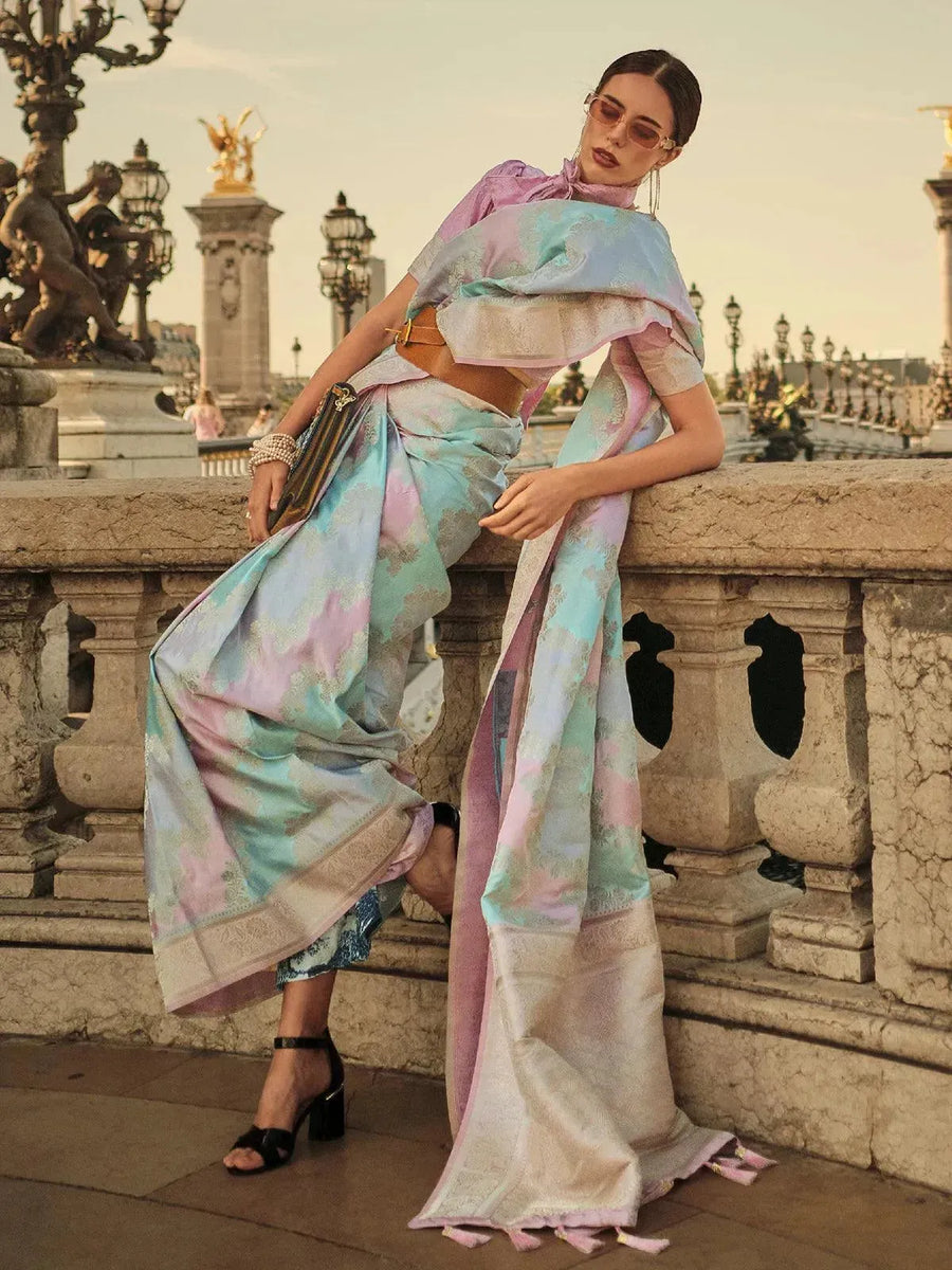 Multi-Color Silk Handloom Saree with Weaving Work For Every Occasion