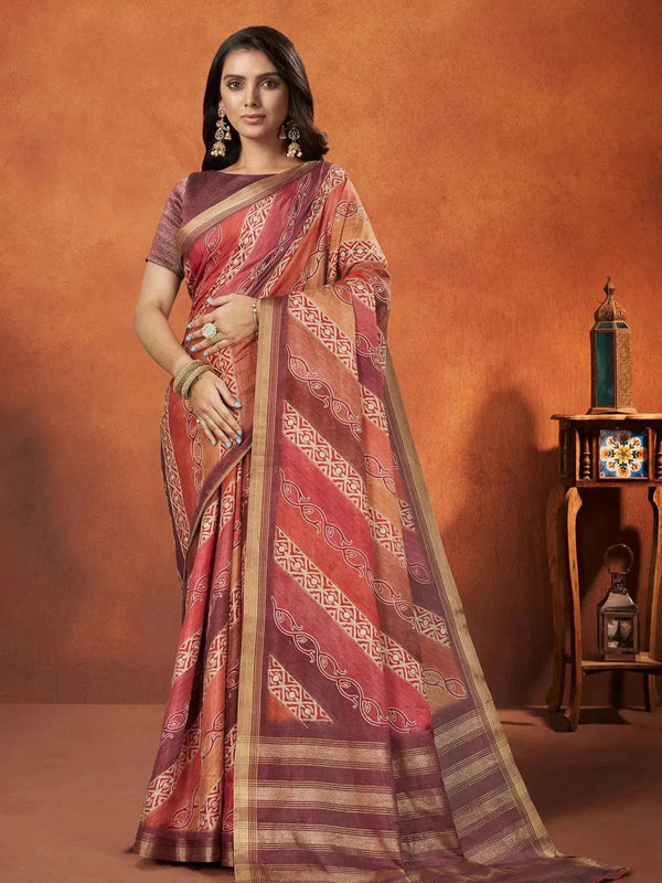 Multi Color Silk Foil Print Designer Saree with Mauve Blouse For Festival Wear