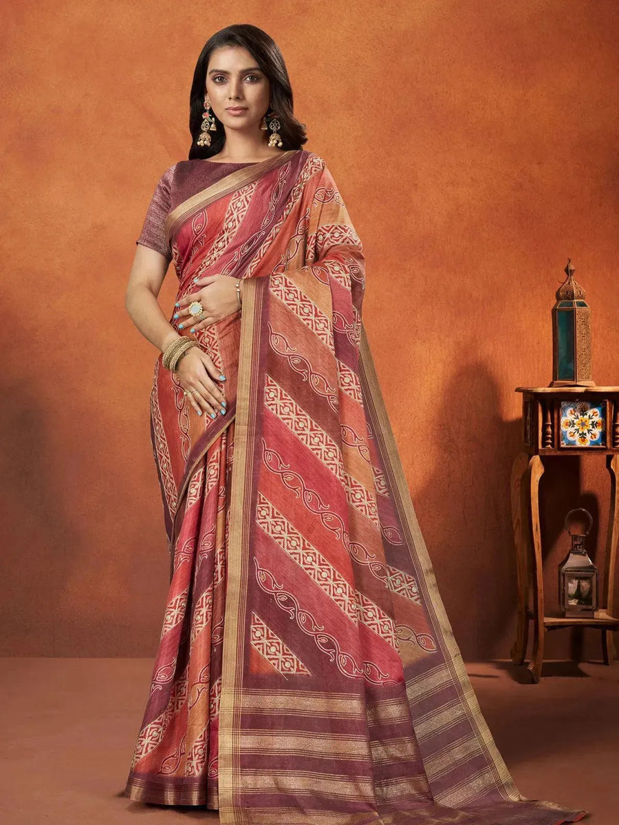 Multicolor Silk Brasso Saree with Embroidered Raw Silk Blouse For Casual & Daily Wear