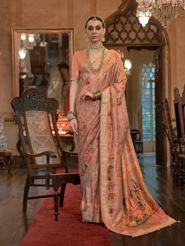Trendy Peach Weaving Work Silk Saree for All Occasions
