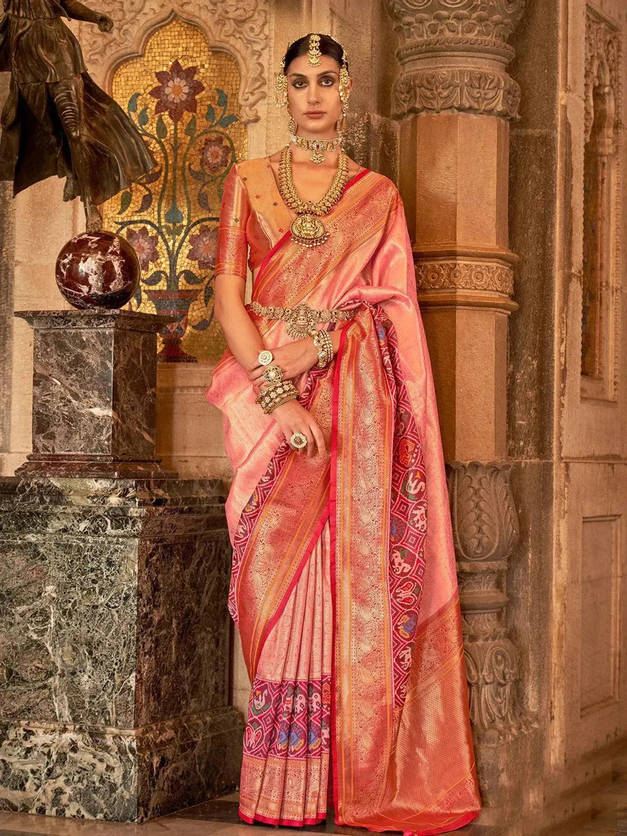 Peach Patola Silk Saree With Handmade Weaving Work for Traditional & Festival Wear
