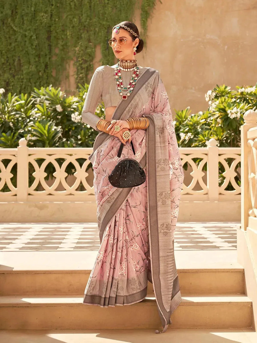 Light Pink & Peach Handloom Weaving Silk Saree for Festive Wear