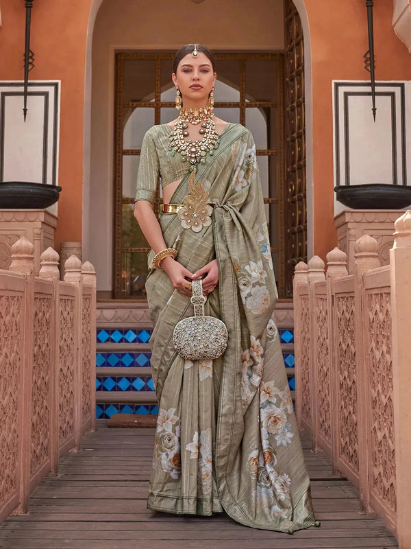 Sea Green Soft Silk Floral Printed Design Saree For Every occasion