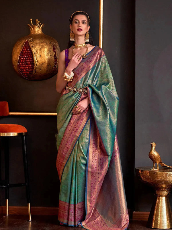 Sea Green Silk Banarasi Zari Woven Saree Wedding Wear