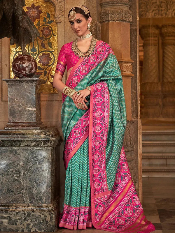 Sea Green Patola Printed Silk Designer Wear saree