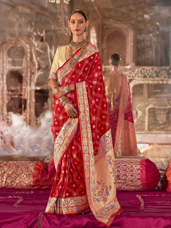 Bandani Design Red Georgette Silk Festival Patola Saree