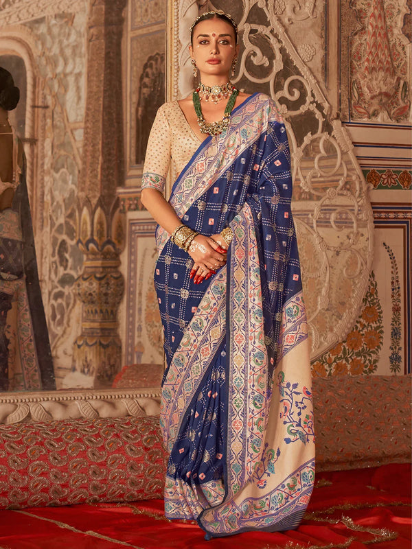 Bandhani Silk Festival Wear Saree In Navy Blue