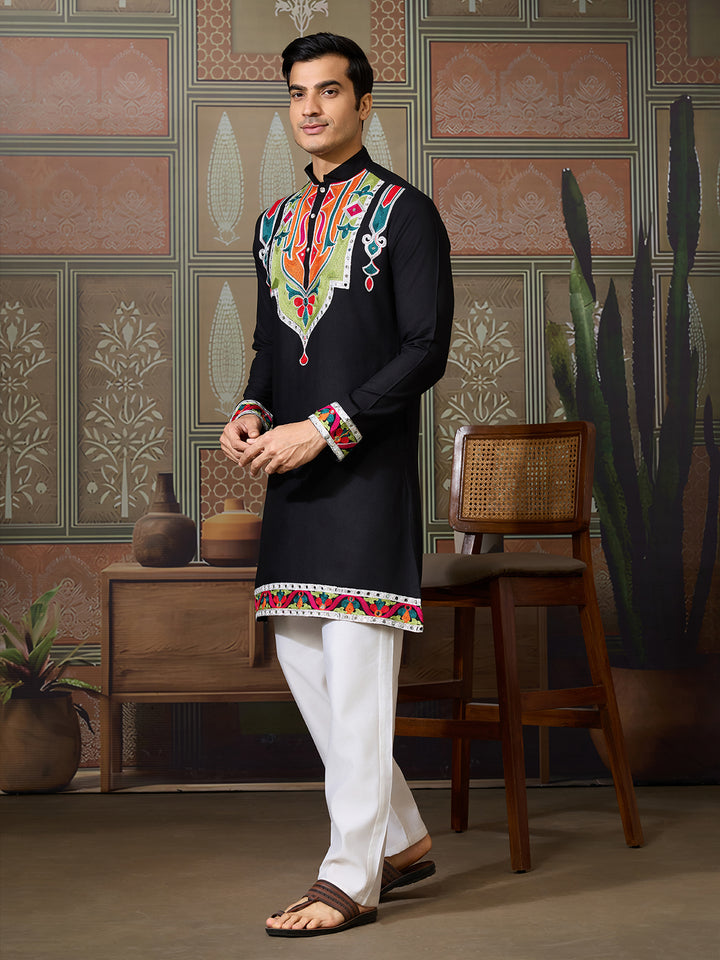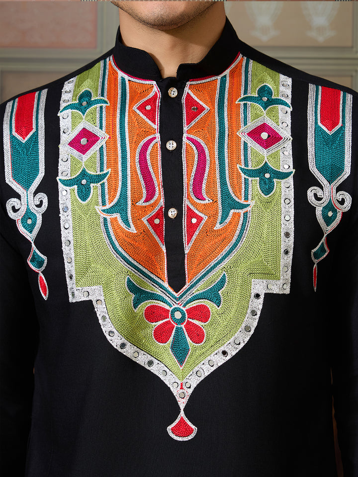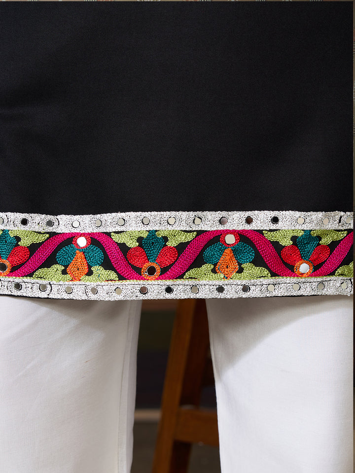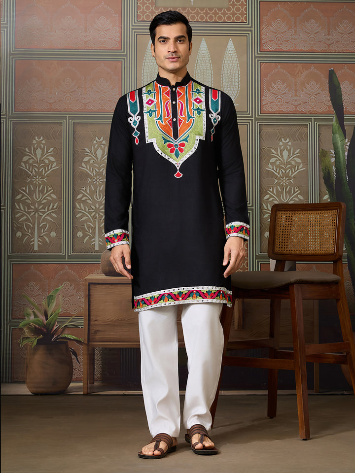 This versatile men’s kurta blends traditional charm with modern appeal, making it a must-have in every ethnic wardrobe. Pair it with a churidar, pajama, or even denim for a fusion look that’s both festive and stylish. Whether it’s Diwali celebrations, wedding functions, or family events, this mirror work kurta for men enhances your personality with a classy ethnic touch. Add this to your collection today and showcase your heritage in style.