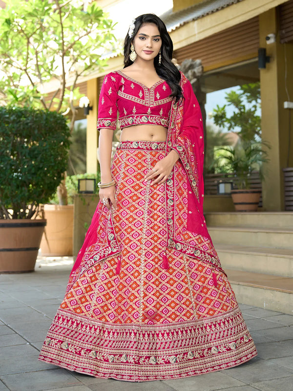 Designer Rani Pink Silk Wedding Lehenga Choli with Embroidery Work