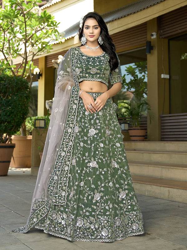 Embroidery Work Green Silk Lehenga Choli for Wedding