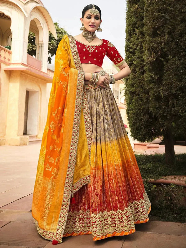 Mustard Silk Wedding Lehenga Choli with Heavy Embroidery & Mirror Work