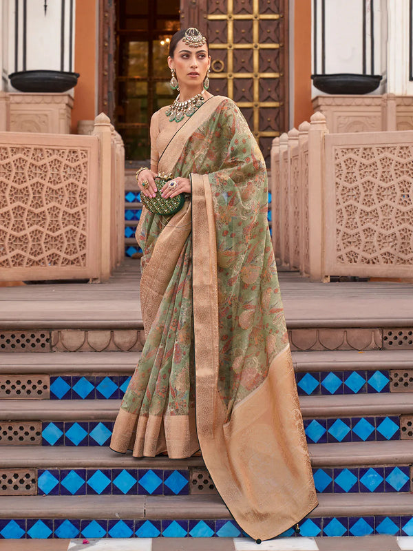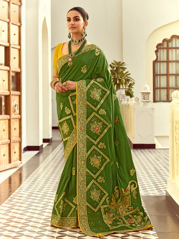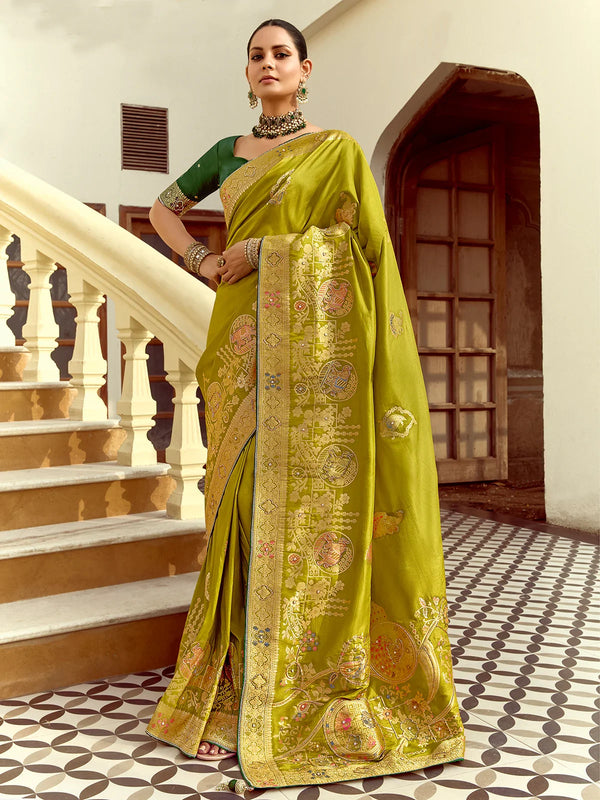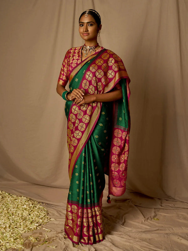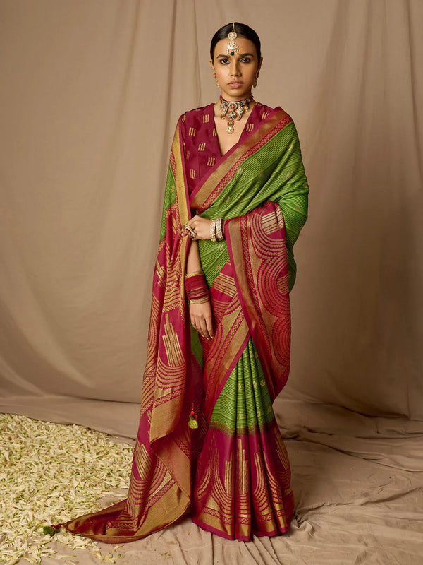 Green Crepe Silk Saree for Wedding & Festive In Zari Weaving Work