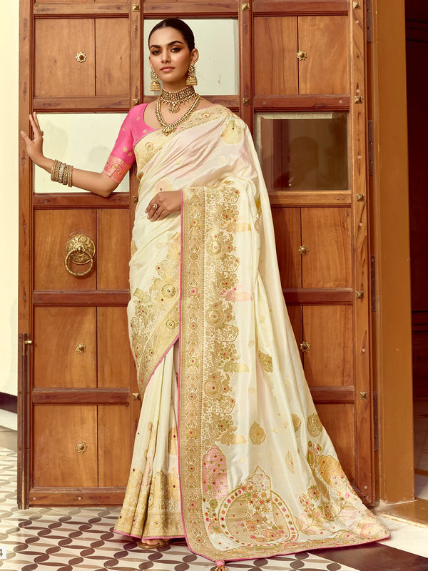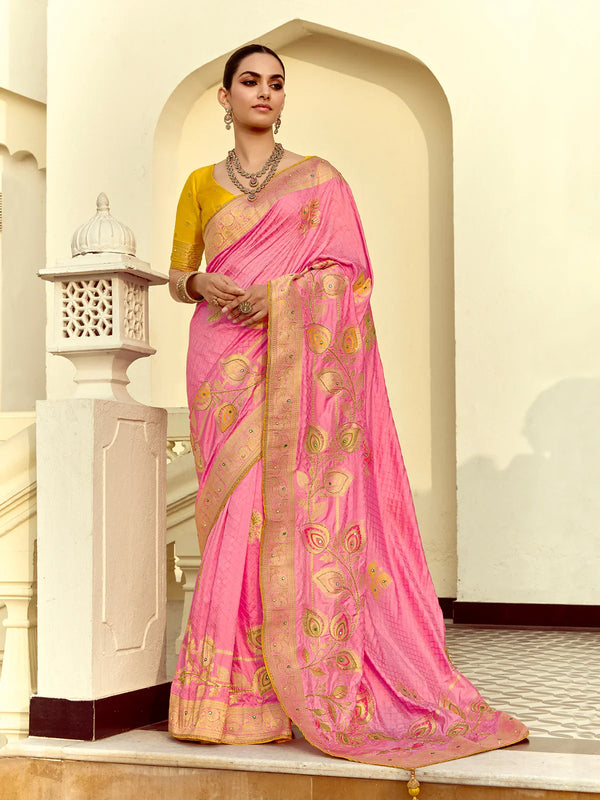 Traditional Zari Weaving Work Pink Crepe Silk Saree