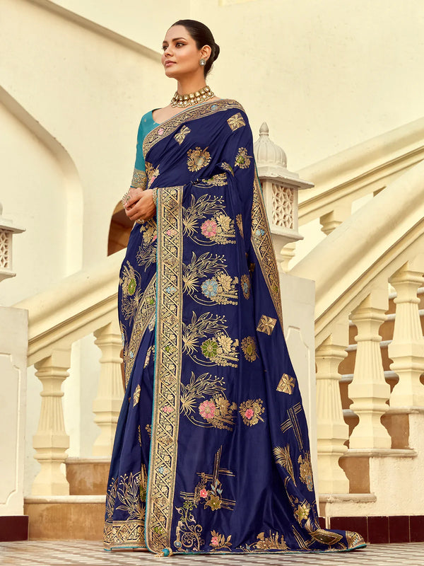 Blue Crepe Silk Wedding Saree with Zari Weaving