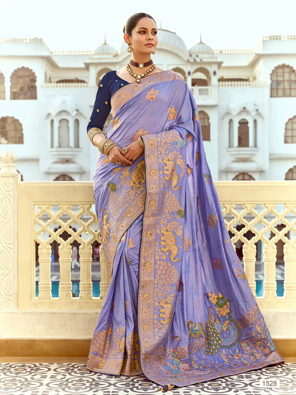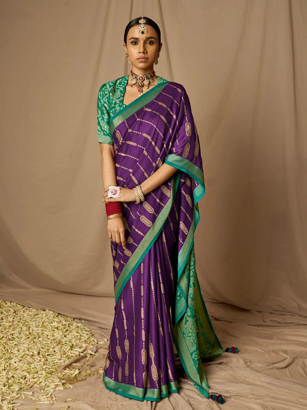 Purple Crepe Silk Saree for Wedding & Festive Wear