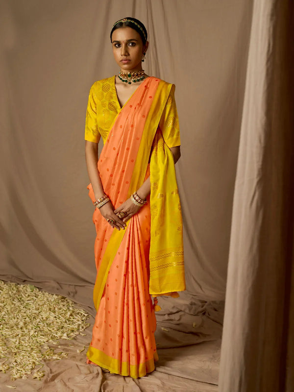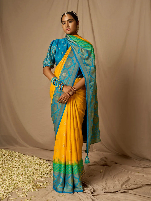 Designer Yellow Crepe Silk Zari Weaving Work Saree