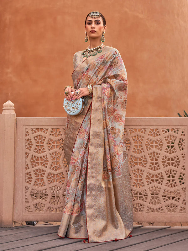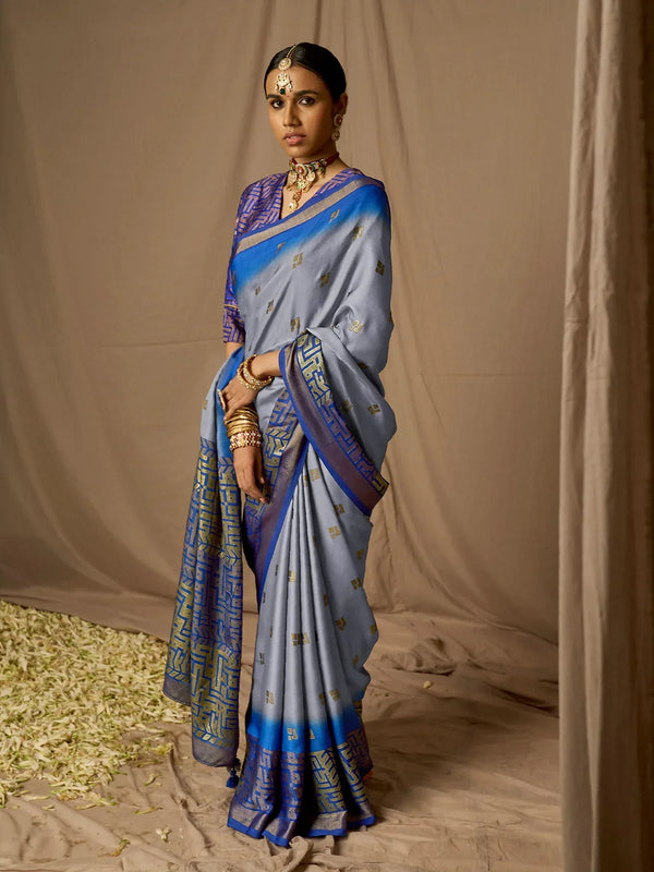 Sky Blue Crepe Silk Saree with Zari Weaving Work