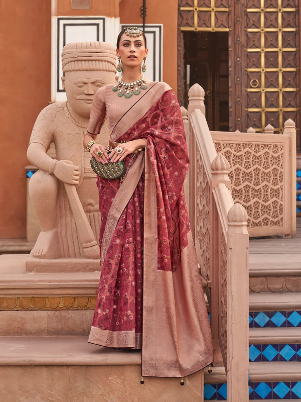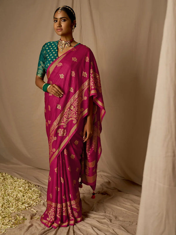 Rani Pink Crepe Silk Saree For Wedding & Festive Zari Weaving