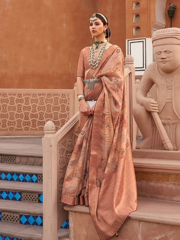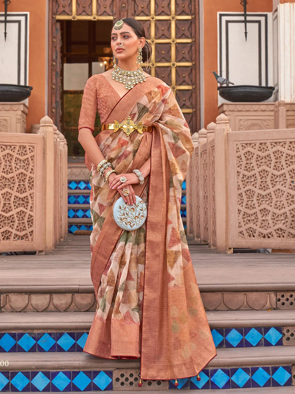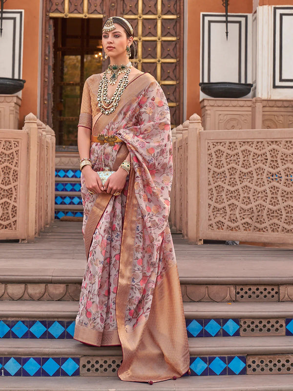 Designer Light Pink Crepe Silk Saree For Wedding & Festive Wear