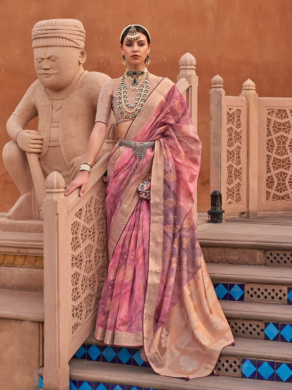 Pink Crepe Silk Saree with Zari Weaving for Wedding