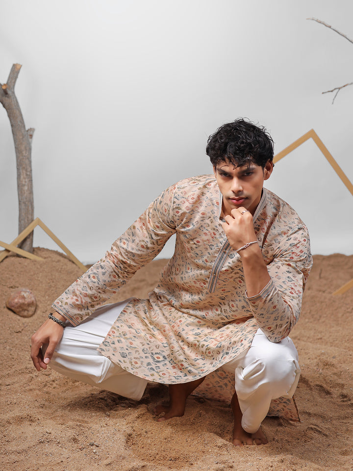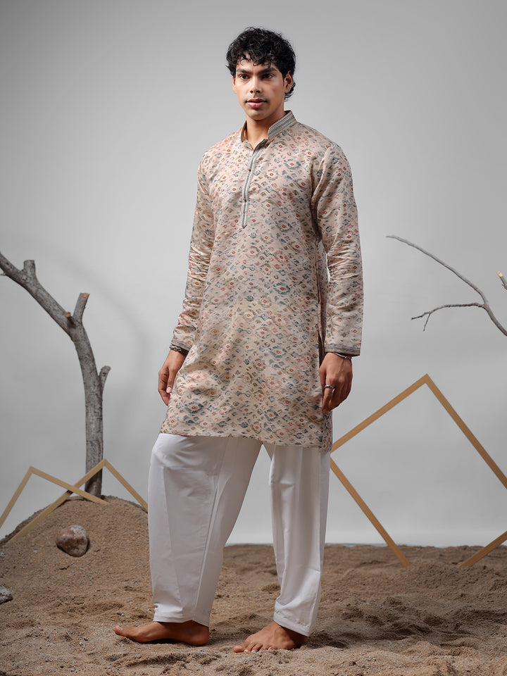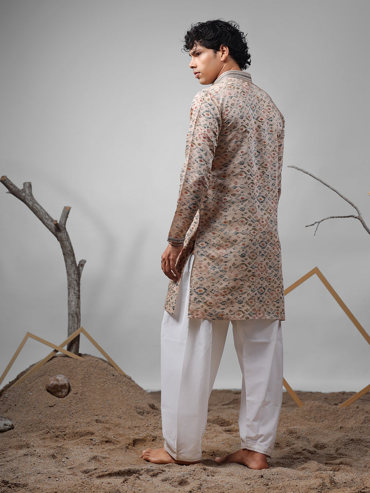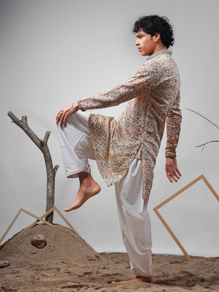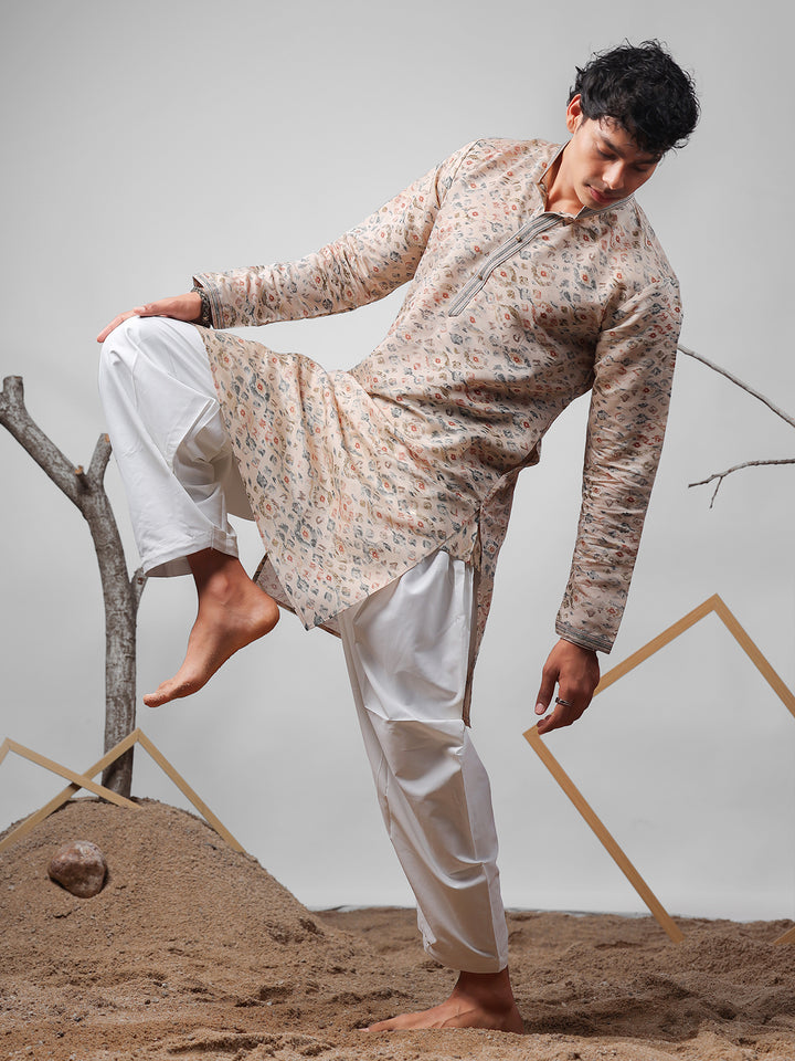 Cream Silk Men’s Ceremonial Kurta Set with White Cotton Bottom