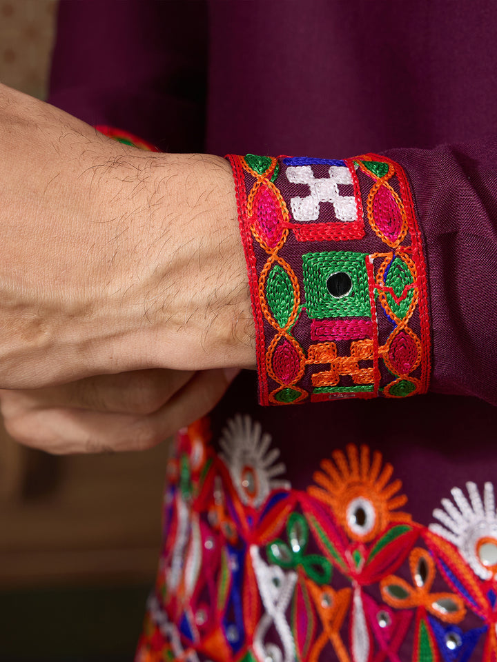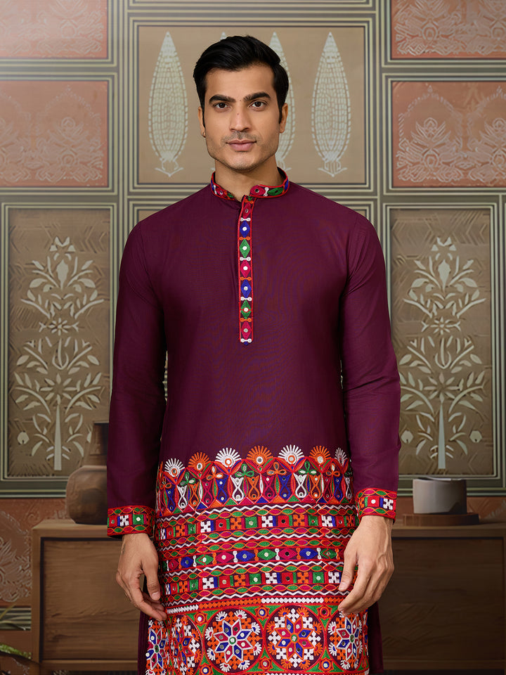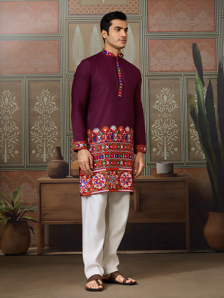 Designer Wine Cotton Silk Men's Navratri Kurta