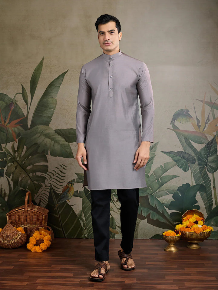 Grey Embroidery Viscose Silk Men's Kurta-Koti