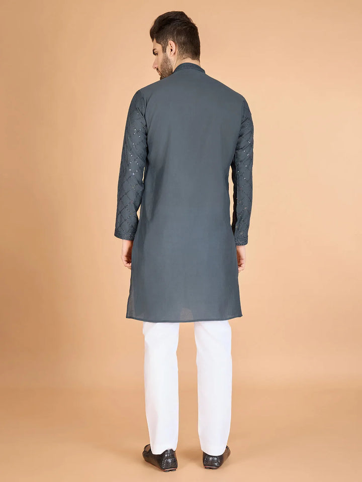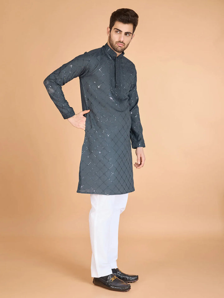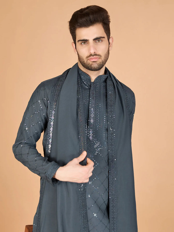 Step into elegance with this Dusty Purple Viscose Silk Men's Kurta, designed for modern men who appreciate traditional craftsmanship. Adorned with intricate thread and sequin embroidery work, this kurta exudes regal sophistication, making it an ideal choice for weddings, festive occasions, and cultural gatherings.
