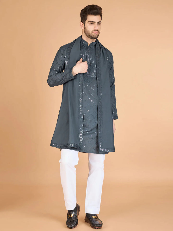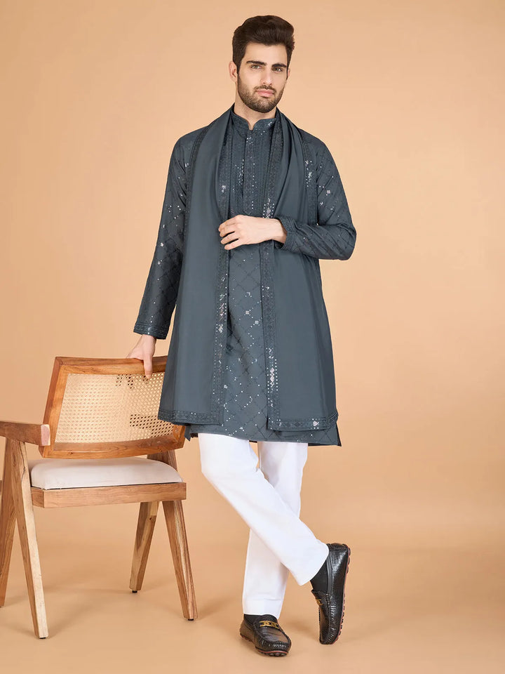 Step into elegance with this Dusty Purple Viscose Silk Men's Kurta, designed for modern men who appreciate traditional craftsmanship. Adorned with intricate thread and sequin embroidery work, this kurta exudes regal...