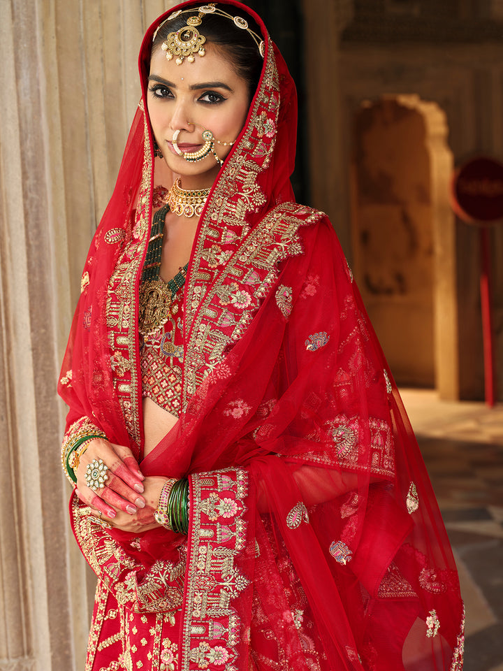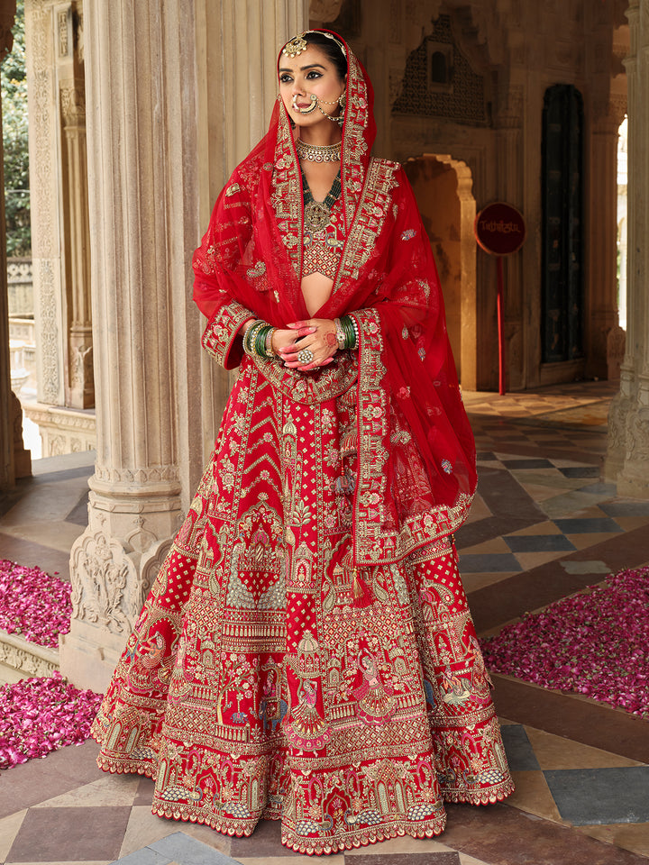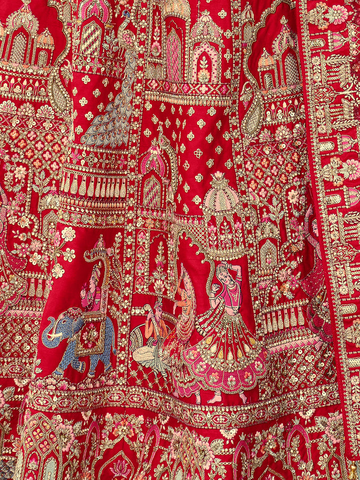 Silk Red Lehenga with Khatli Embroidery Heavy Work for Wedding Wear