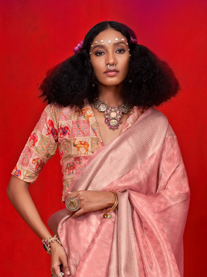 Pink Viscose Zari Tissue Silk Saree with Satin Blouse – Festive Wear