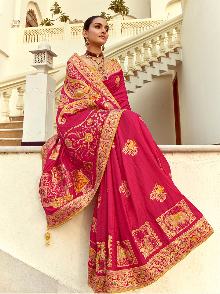 Turn every occasion into a celebration with our Red Organza Tissue Saree, beautifully crafted with heavy border work and intricate butta detailing. This luxurious saree is the epitome of elegance, designed for women who love making bold and timeless fashion statements. The lightweight organza tissue fabric gracefully drapes across the body, making it ideal for party wear, festive gatherings, and wedding functions. The vibrant red hue adds a classic touch of sophistication while the shimmering embellishments catch the light with every step.