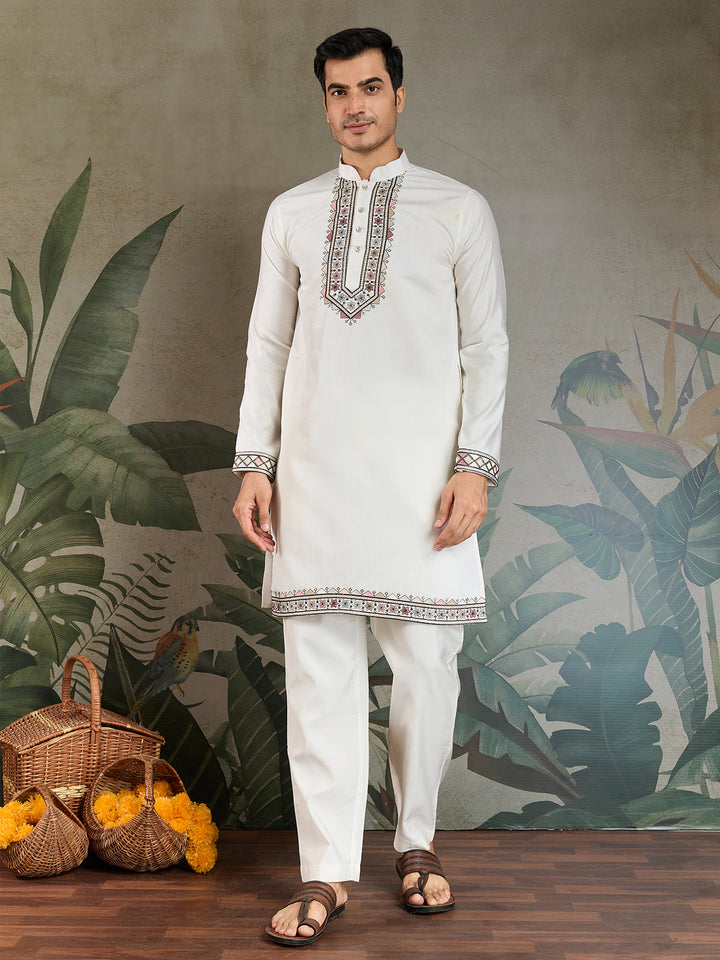 White Viscose Silk Men's Wedding Kurta with Thread & Sequence Embroidery | Premium Indian Ethnic Wear