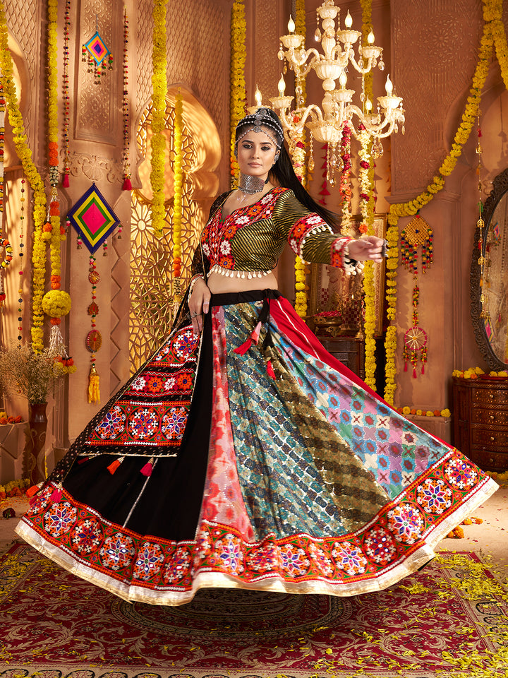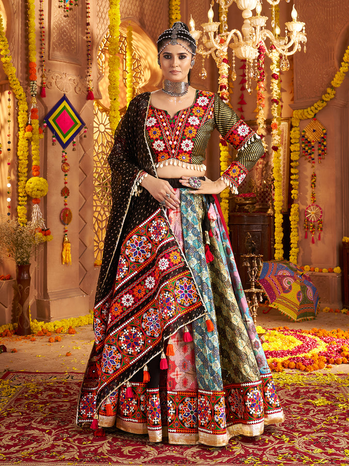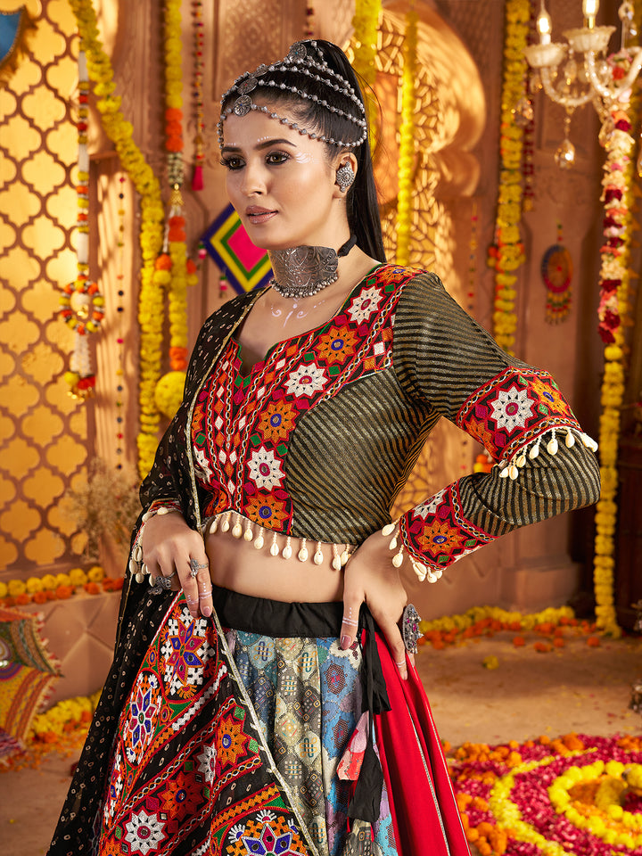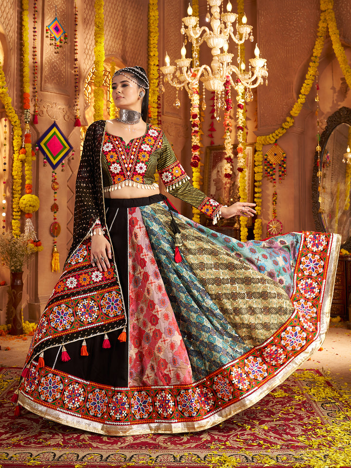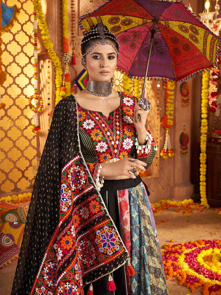 Navratri Lehenga Choli In Black with Mirror & Thread Embroidery Work