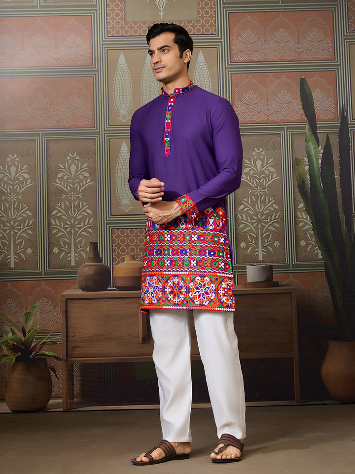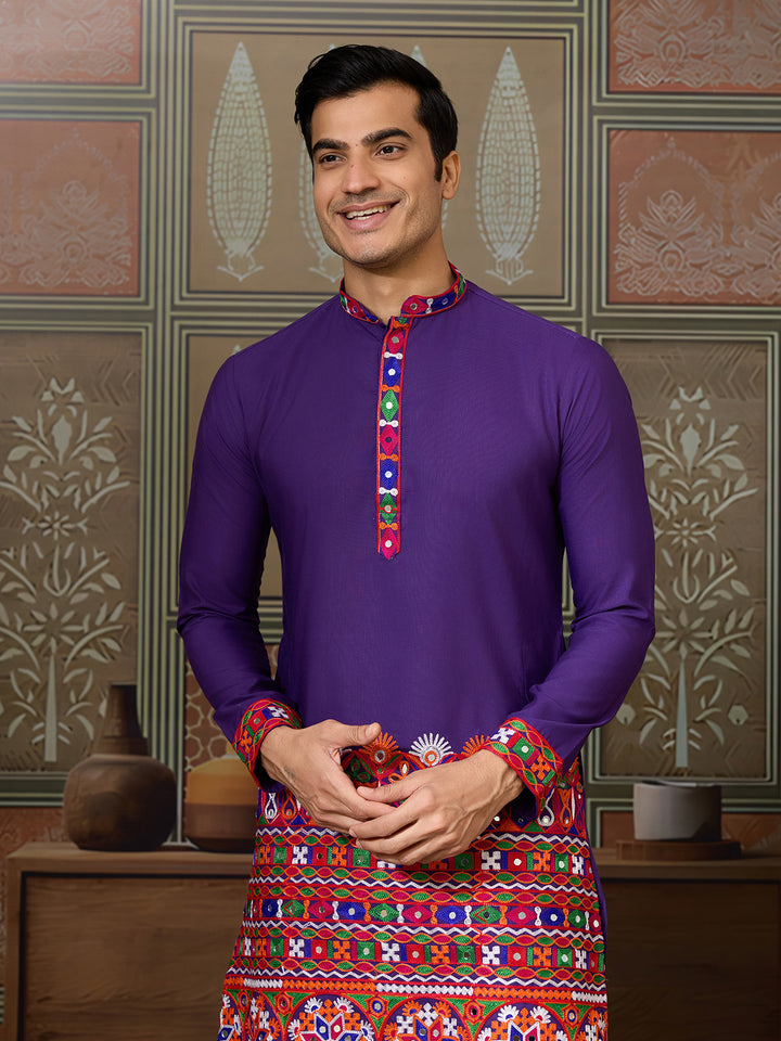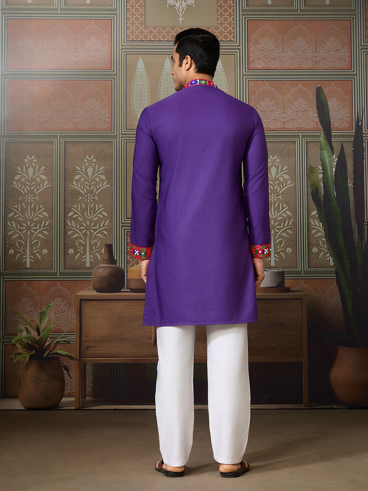 Navratri Traditional Wear Men's Purple Cotton Silk Kurta