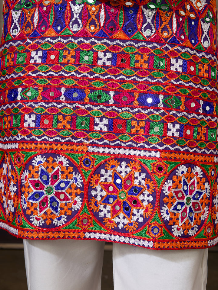Perfectly blending traditional artistry with contemporary style, this kurta ensures you look polished and refined at all times. Pair it with a classic churidar or contrasting pajama, along with juttis or mojaris, to complete your festive look. Whether you’re attending a family celebration or dressing for an ethnic event, this men’s mirror work kurta is your go-to choice for effortless style and cultural sophistication.