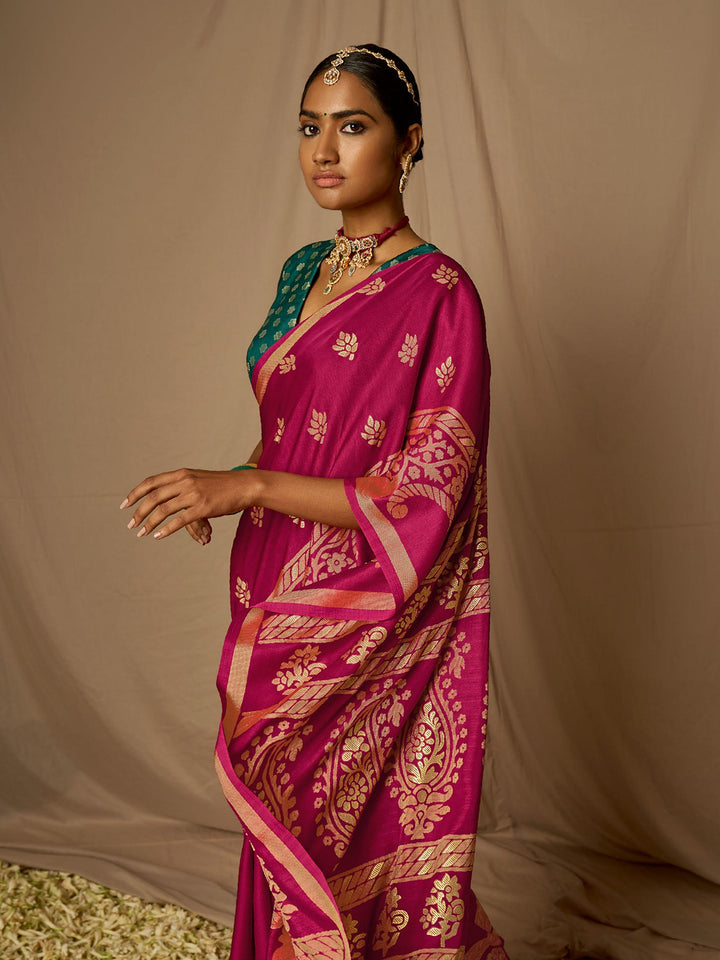 Rani Pink Designer Silk Saree For Ceremony Wear
