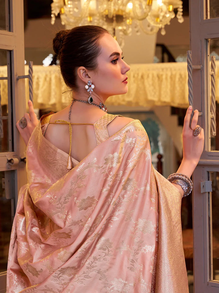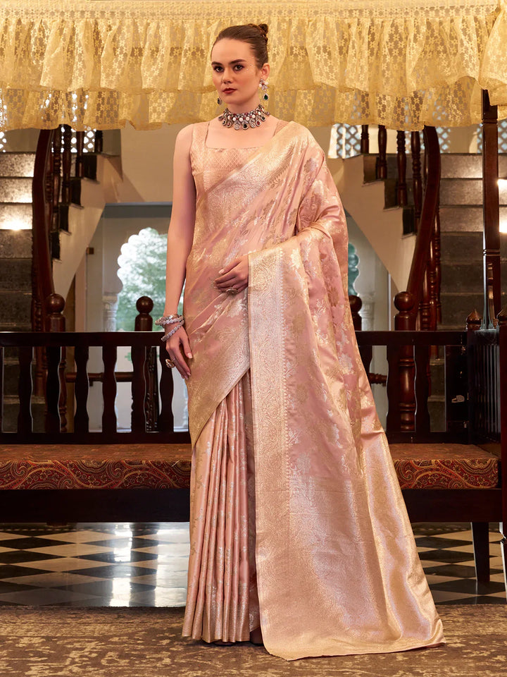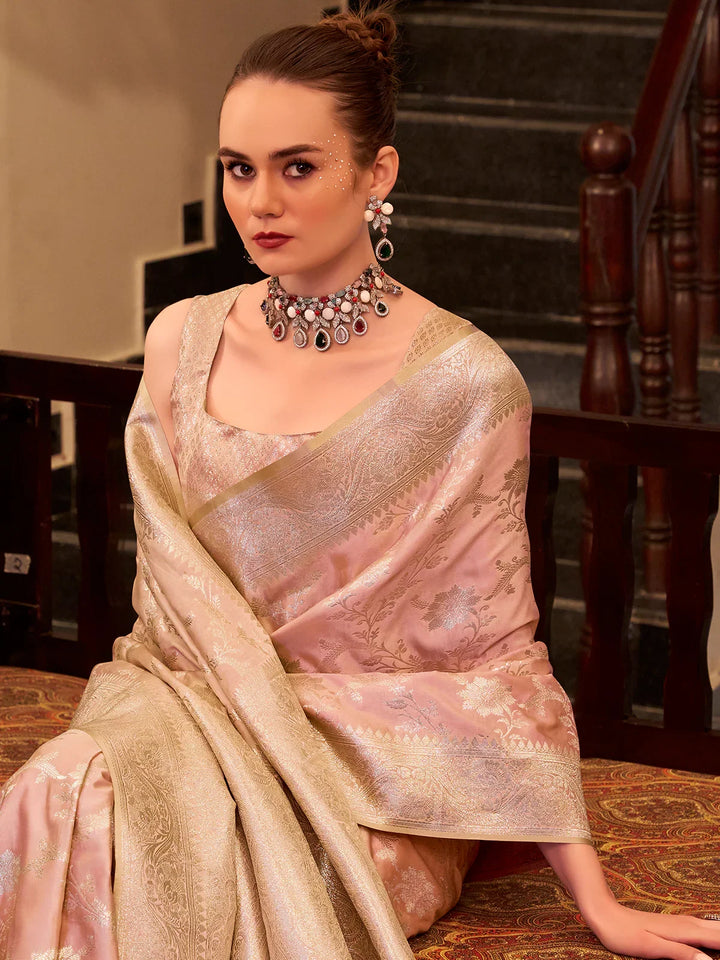 Traditional Pink Satin Silk Saree with Zari Weaving